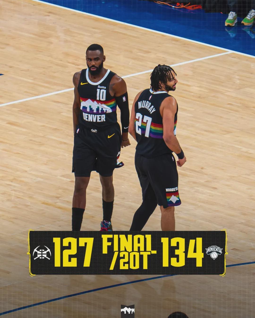 掘金双加时127-134不敌尼克斯,自约基奇复出之后,掘金只有1胜3负。截至今天赛前,掘金33胜19负依然排名西部第三,落后第二的马刺已经2个胜场,领先第四的火箭只有0.5个胜场。更让掘金扎心的是,又有两个首发受伤了。